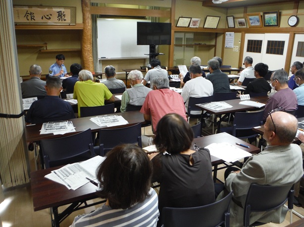 防犯研修会を開催しました。 投稿者:oomori1 投稿公開日:2025年10月5日 投稿カテゴリー:未分類 9月28日(日)大森第一区集会所で、防犯研修会を開催しました。 大森交番の渡部智貴さんに講師をしていただき、特殊詐欺対策と交通事故防止などについて講話をしていただきました。受講者は48名で、ビデオや各種チラシにより犯罪の未然防止や交通安全を再認識した大変有意義な研修会でした。 おすすめ 新入学児童歓迎会を開催しました。 2025年2月24日 区民講座を開催します。 2024年10月24日 区報第43号を発行しました。 2023年12月27日