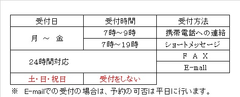 午 前( 8時~12時)午 後(13時~17時)夜 間(17時~21時)